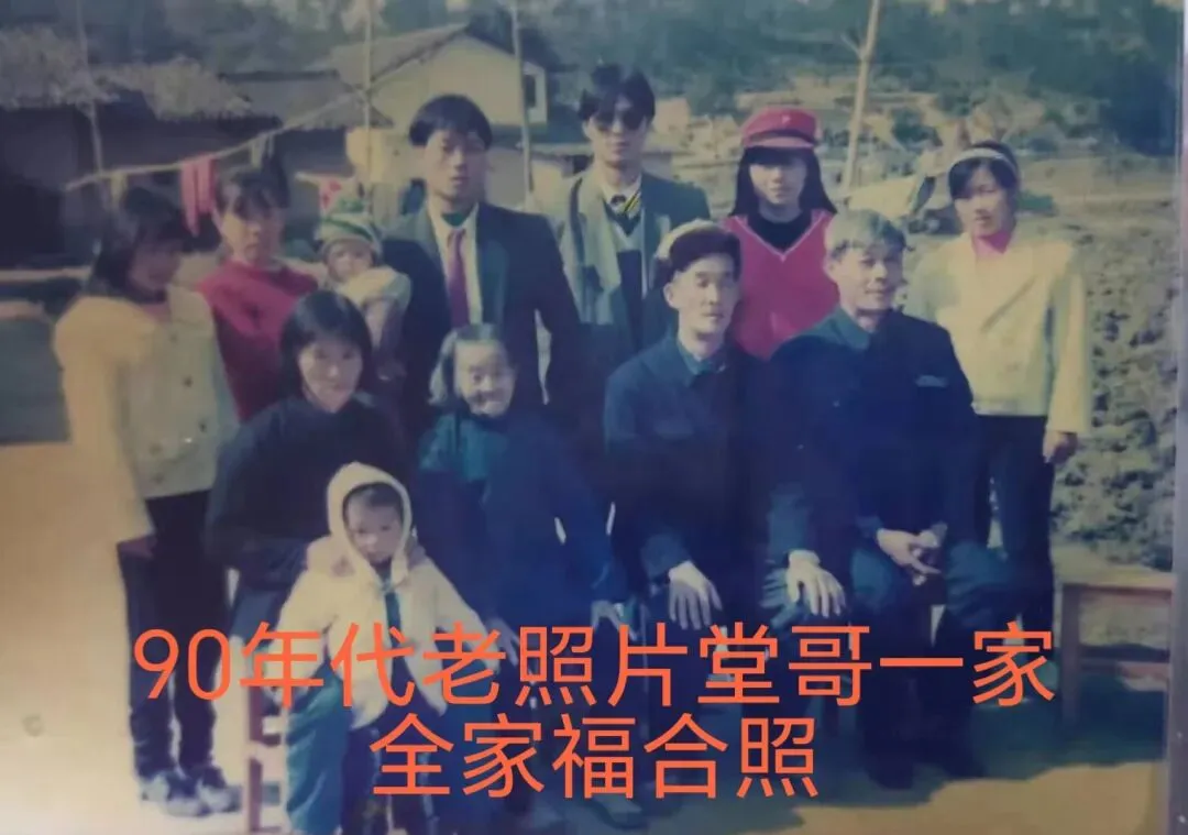 记忆中的黑瓦泥墙,90年代老照片,堂哥家全家福合照