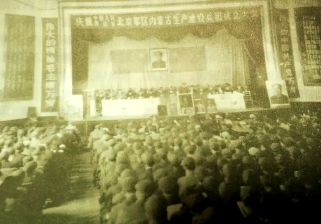 5月7日, 内蒙古生产建设兵团在呼和浩特召开成立大会, 兵团部设在内蒙古自治区党校院内。短短几个月, 接收了5000多名复转军人, 还派出接兵小组分赴北京、天津、保定、上海、浙江等地, 接来5.843万知识青年, 组建了4个师、24个团、246个连队。1970年又组建了两个师和15个团。内蒙古自治区档案馆保存着几大本介绍信, 来兵团的理由五花八门。不过所有来者都必须经过严格政审, 出身不好、本人表现不好、海外关系复杂等均被拒之门外。