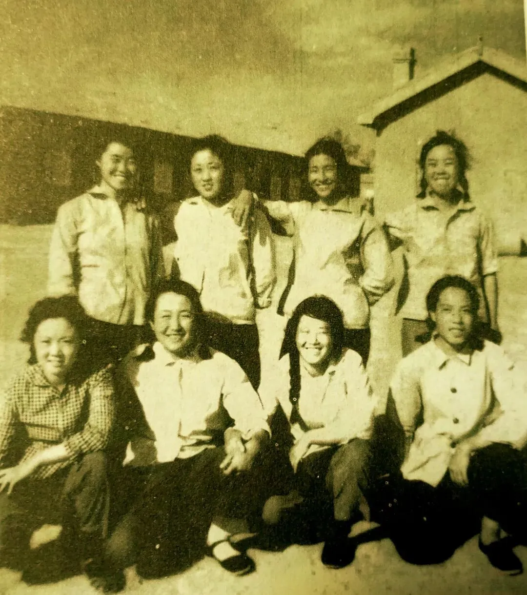 团部卫生员于秀英,军人服务社售货员赵冬莲,司药刘卫东。司令部保密员任秀荣在团部办公室门口合影。 新建立的北京军区内蒙古生产建设兵团, 列入北京军区序列, 正军级, 兵团司令部设在呼和浩特市。兵团司令员由内蒙古军区副司令员何凤山兼任, 第一政委由野战军政委兼任, 因未到职, 第二政委倪子文就成了实际上的政委。