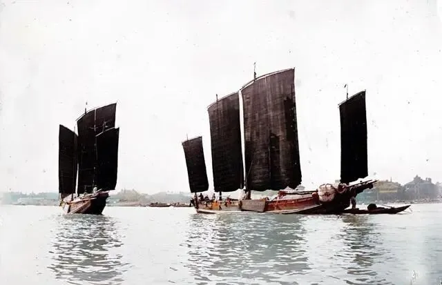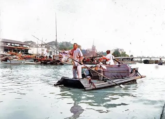 上海外滩的旧日时光,客船是常见的交通工具,有的是由人力划行,有的则是扬帆航行,为乘客提供便捷的出行服务。