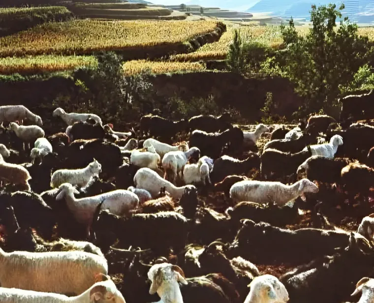 你看这张照片,是大寨村饲养的绵羊和山羊,是膘肥体壮的。大寨的畜牧业,在那个年代还是很兴旺的,