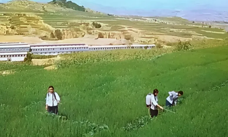 你看这张照片,是在大寨的一处水田里,社员们是正在插秧的。大寨是不但种植有旱地农作物,也种植水稻的,