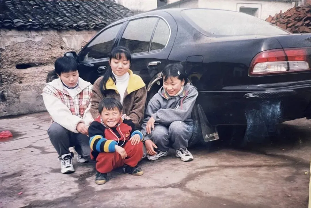第四张照片里,两个家庭的4个孩子围蹲在黑色轿车旁,穿着休闲的运动装、夹克,背景是乡村民居的黑瓦屋顶与红砖堆。轿车的出现,反映出新世纪初邢宅乡村经济发展带来的生活变化,孩童的穿着与神态也展现出新时代乡村孩子的生活状态,与前几张照片的时代氛围形成对比,体现出邢宅乡村生活在逐步改善。邢宅村农耕的慢时光里,渐渐融进了时代的快节奏,孩子们的笑容里,藏着乡村新的希望。
