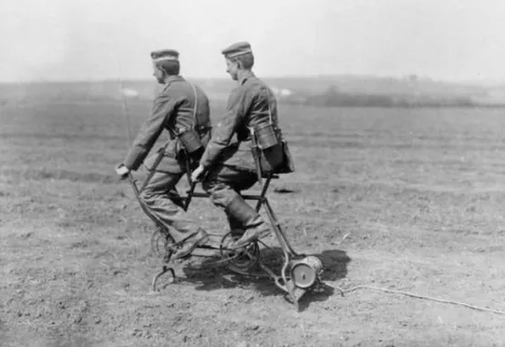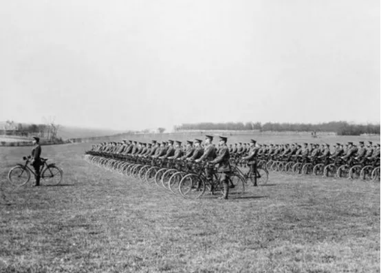 图二,图为一战德军的自行车部队,本以为机动性是决定战争胜负的关键,可惜,一站最后发展成了绞肉机式的堑壕战。