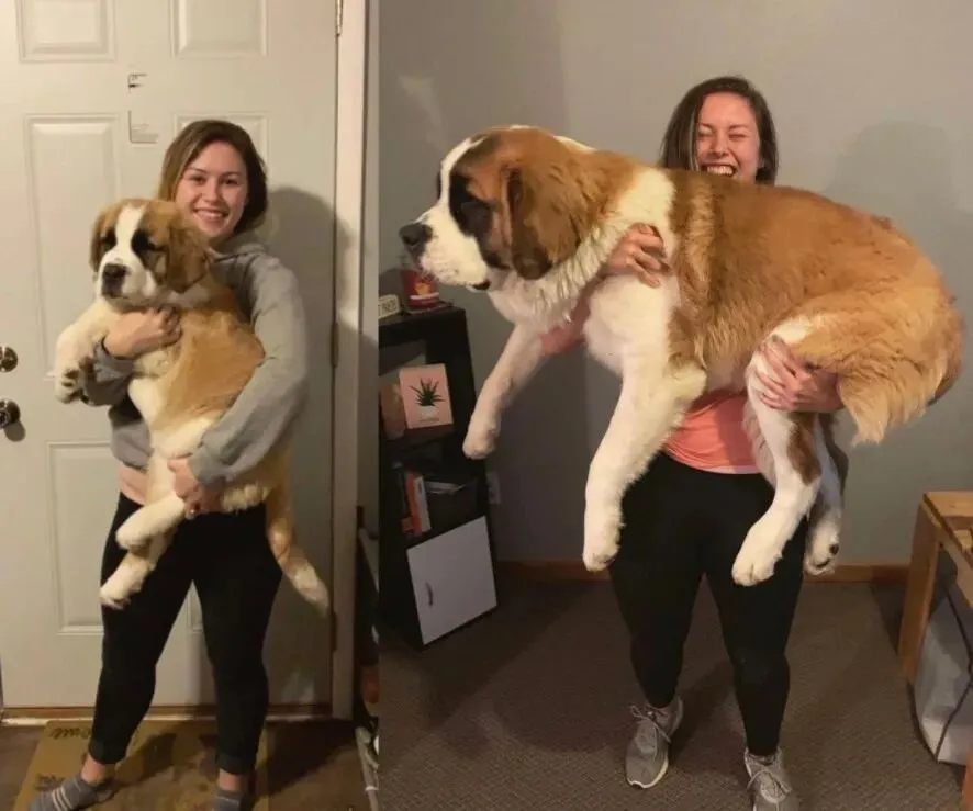 还有只狗 , 小时候就巴掌那么大 , 现在都快比主人还大 , 这伙食得多好啊?