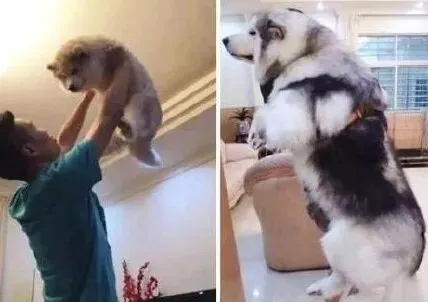 外网有个挑战火了 , 就是把狗子小时候和现在的照片放一起对比 , 结果看完真的 , 笑着笑着眼眶就湿了~