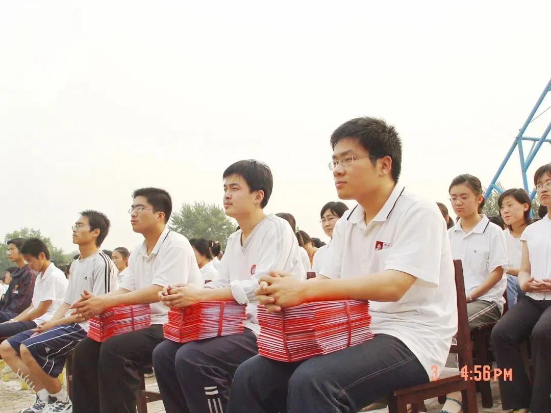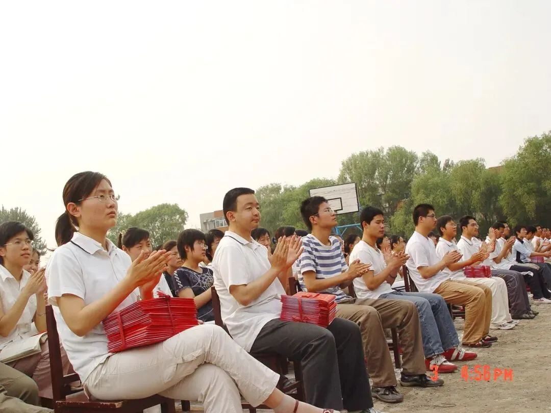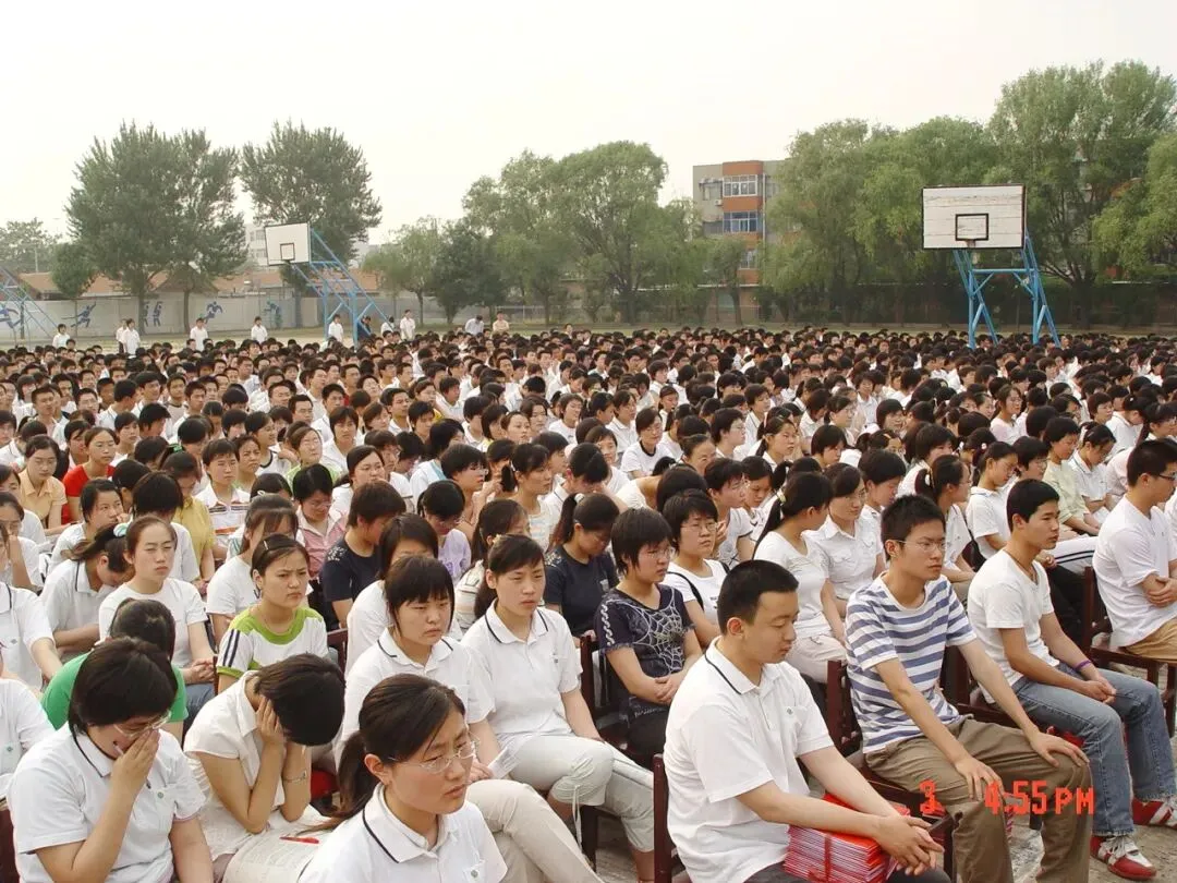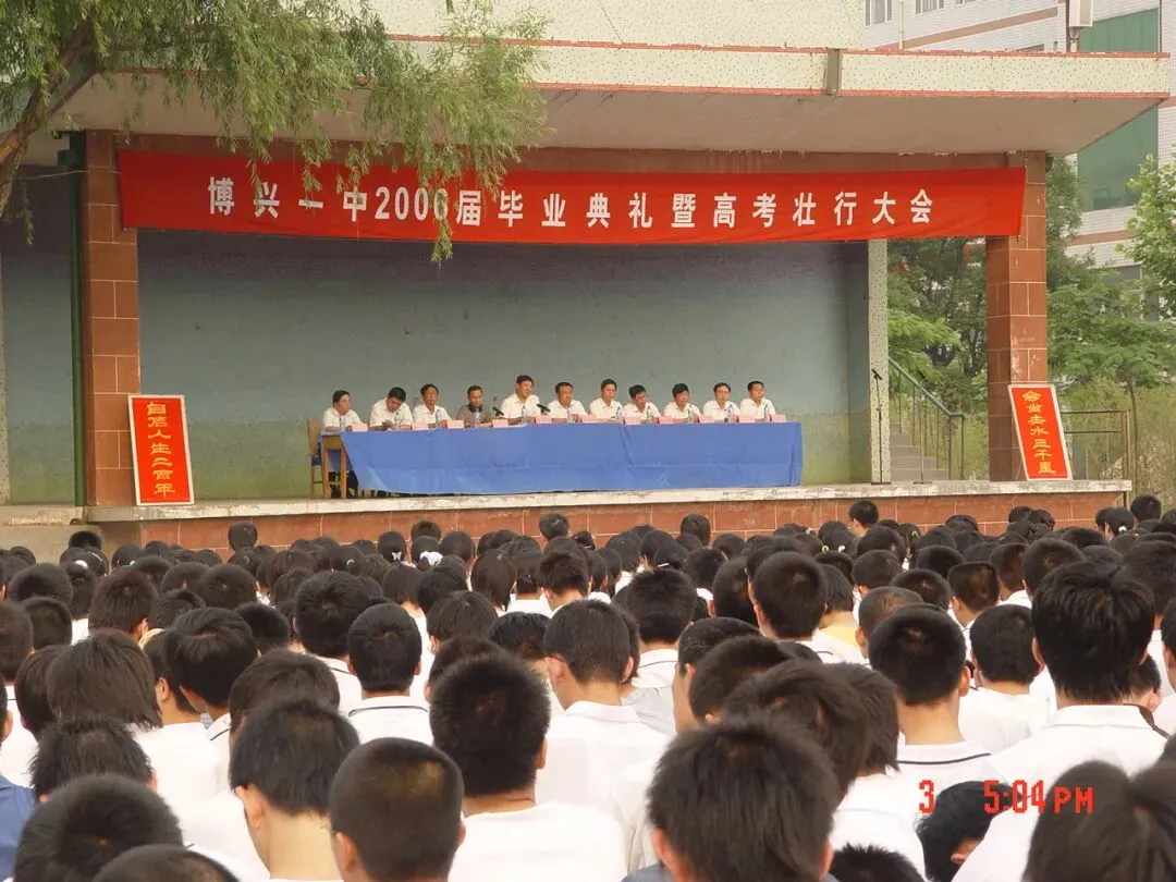 远处的镜头定格下完整会场,红色横幅“博兴一中2006届毕业典礼暨高考壮行大会”格外醒目,操场被密密麻麻的身影填满,那是青春最热闹的集结。