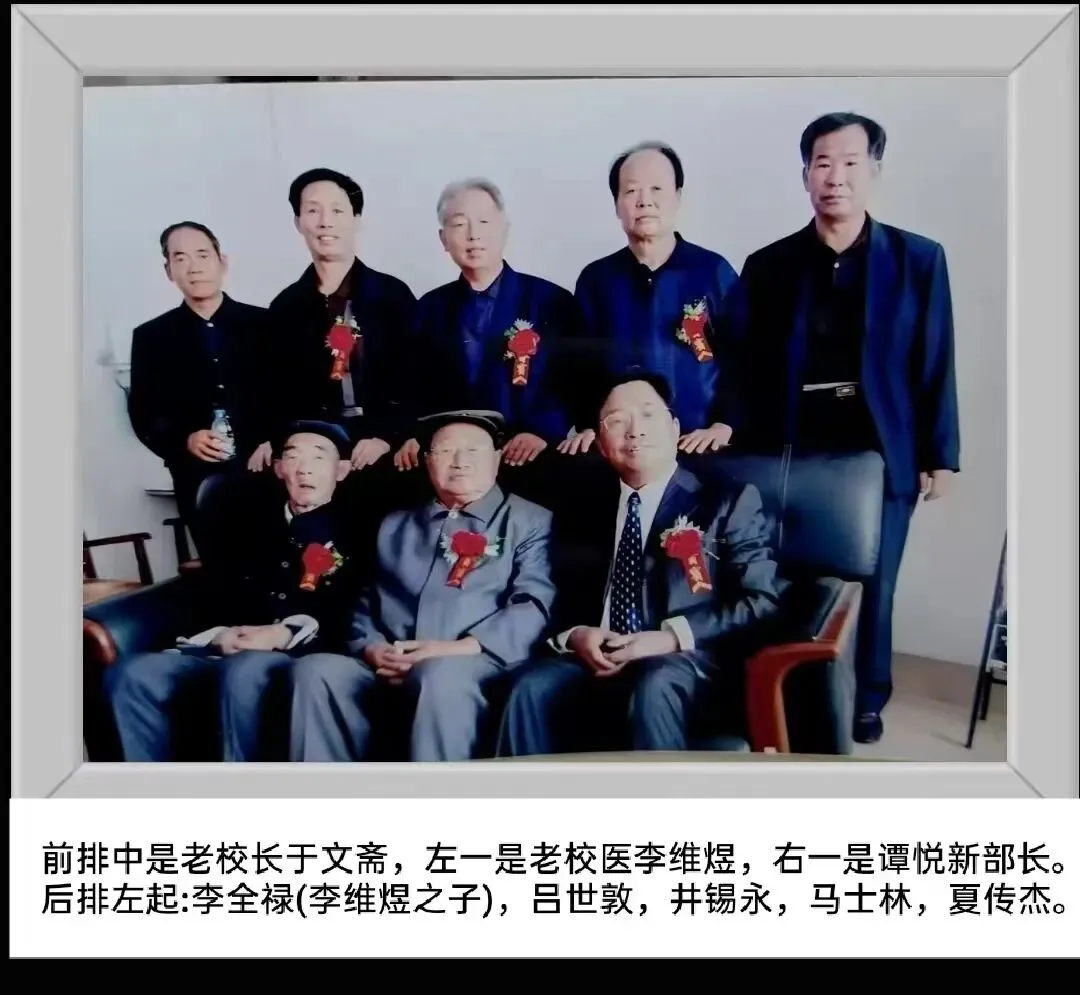 2006年10月6日,我和马士林同学一起去参加临朐二中五十年的校庆活动。庆典开始前,我们相约到了学校办公室,正巧碰到老校长于文斋、老校医李维煜、老学兄谭悦新和几位校友在那里准备照相,我们俩也加入了照相的行列,一起留下了这张非常珍贵的照片。