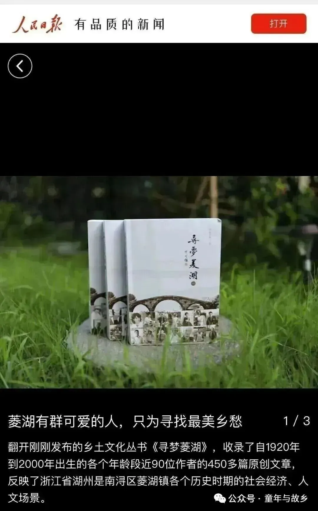蒋国梁老师说:“菱湖,谁人不知,无人不晓;乡愁,谁人不梦,无人不寻。一套三册、500余篇、1750多页的《寻梦菱湖》,见一批乡贤已在解读水乡的前世今生。”