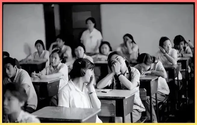 看看这张黑白照片,是不是.瞬间觉得穿越了,这就是咱们当年的.教室啊.!没有空.调,没有.多媒体,只有几张坑坑洼.洼的双人木课桌。