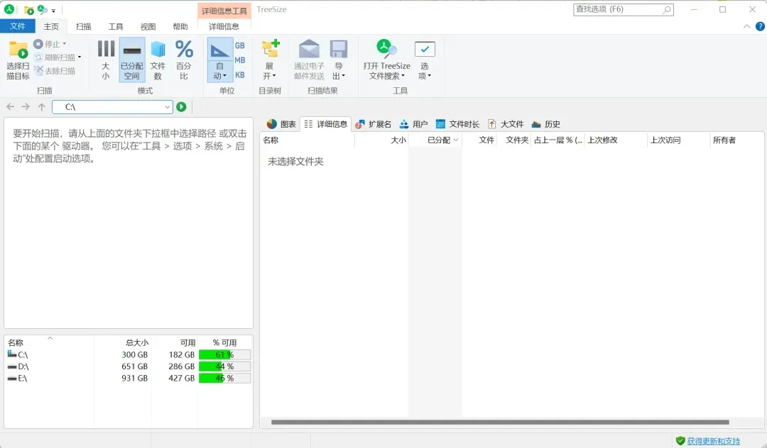 我日常最常用的绿色版工具,双击即开,无需授权。扫描速度飞快,选盘符运行后,能以图表、列表等多种形式展示占用情况。