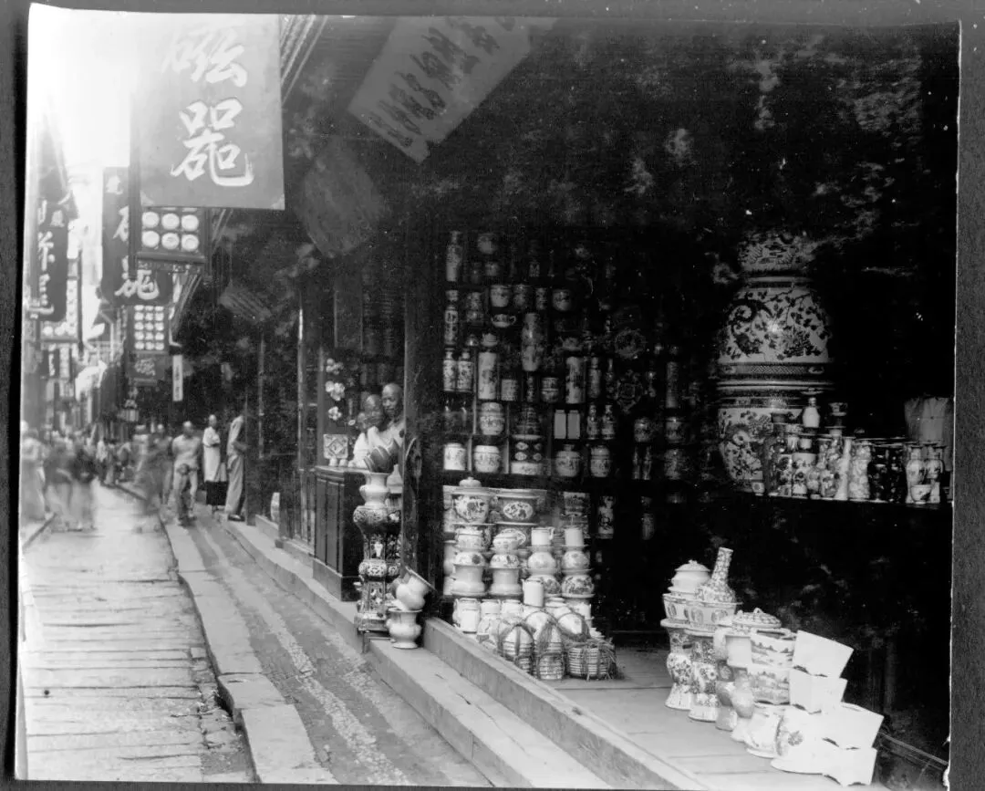 在古代瓷和磁经常被混用,这个卖磁器的商家,店招上的器字很有特色。