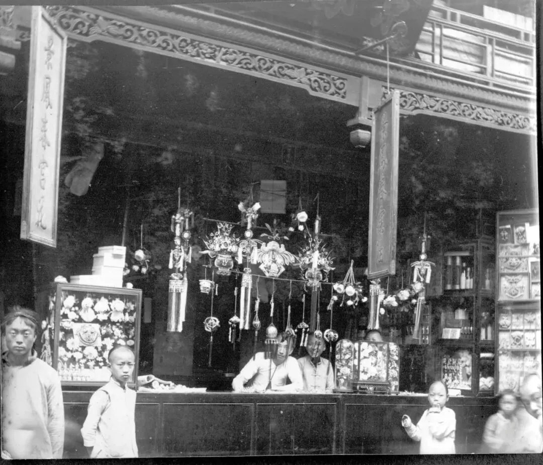 凤春宫花店,孩子们好奇地望向镜头。宫花,也称绒花,喜花,是