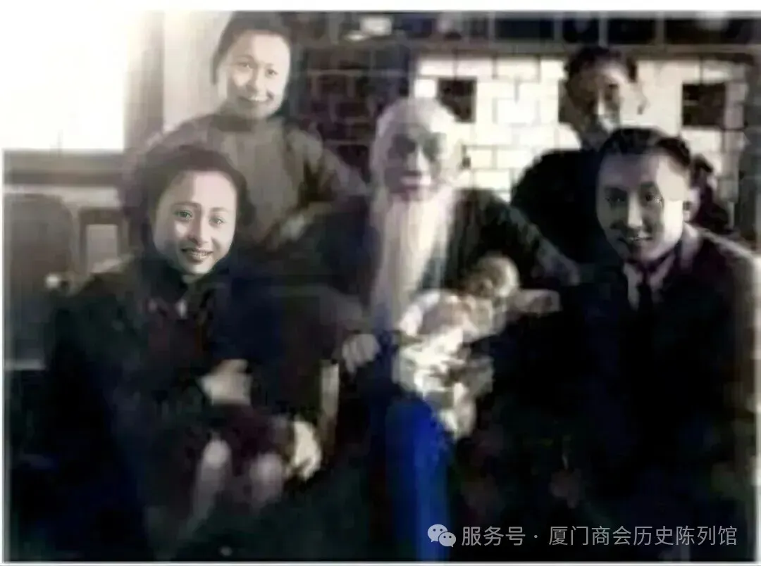 林尔嘉怀抱曾孙林东宁,与次孙林慰桢刘树璋夫妇、三子林鼎礼孙慧琼夫妇合影