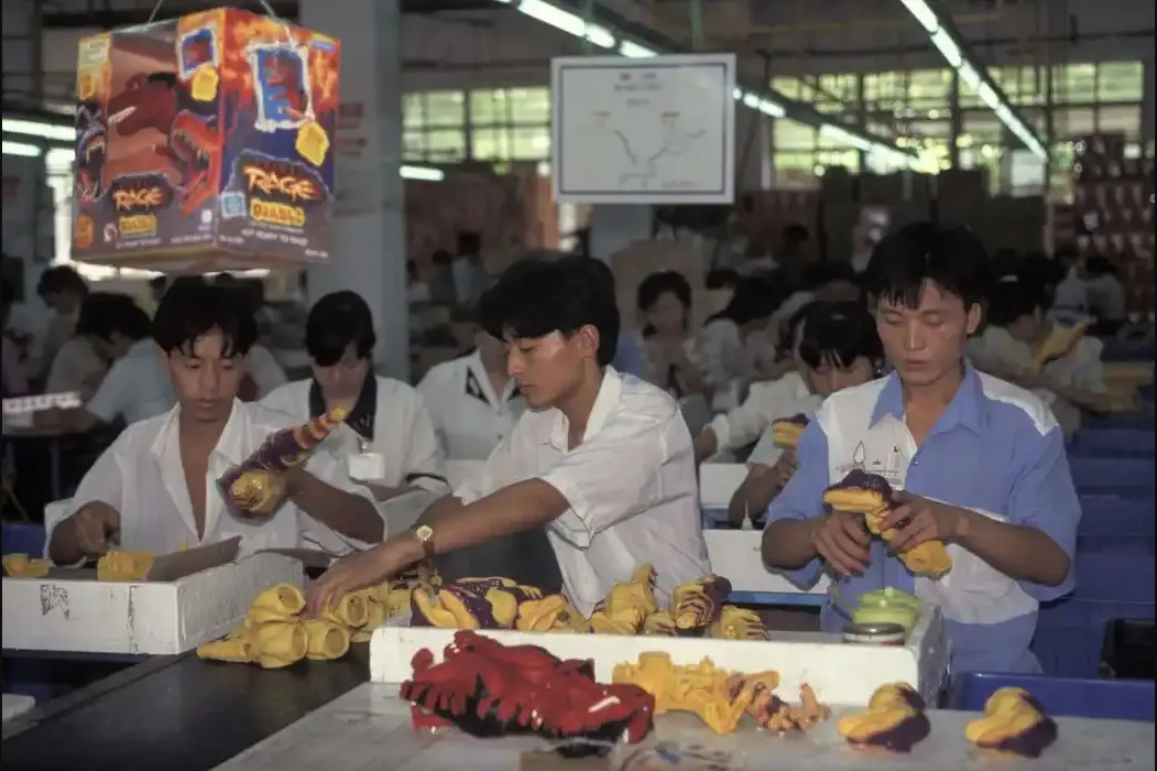 9、1990年代的深圳,由外国摄影人久保田博二拍摄,在一家玩具厂,来自全国各地的打工仔汇聚到这里,他们正在加工恐龙玩具,看他们的颜值一点都不输于当今的小鲜肉影星们。