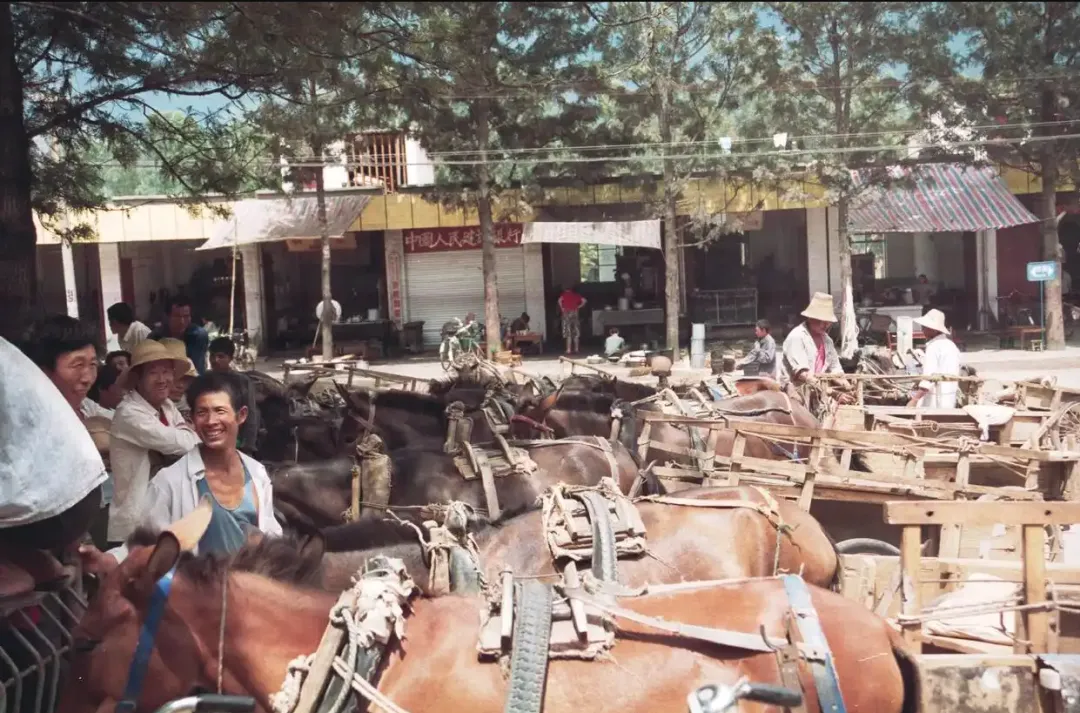 10、1992年的大理附近,由外国摄影人johannes Hartzheim拍摄,这是在大理到四川乐山的途中,一处名为新桥镇的地方,拍摄者看见旁边有很多马拉着板车,左边的百姓露出灿烂的笑容,对面的临街门面,关着门的是中国人民建设银行新桥储蓄所,看起来很是简陋。