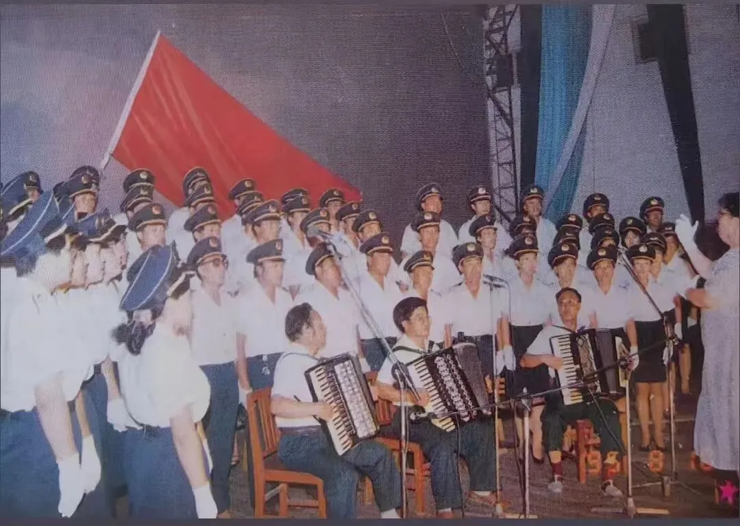 文艺队员们背后的红旗,前面戴着白手套的女指挥,全身心投入其中的手风琴手,还有老照片右下角的日期标志——“95 8 10”……当回首过去时,每一个被定格的瞬间都那么珍贵,那是属于一个时代的青春记忆。