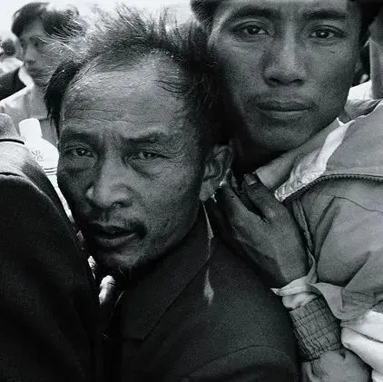 1999年春运,株洲火车站,一辆来自河南的列车旁边,一个被挤得不行了的老汉跳下火车,向警察求救。老汉的儿子没能跳下火车,被运往广东。