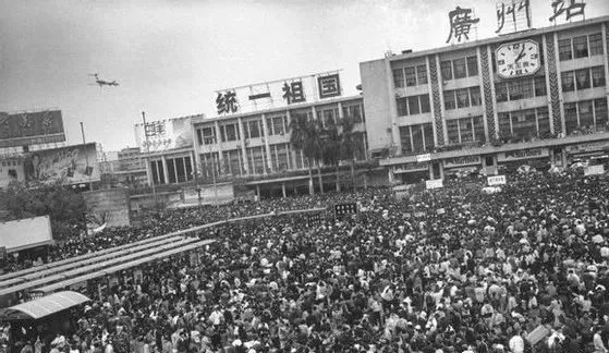 1998年春运,人山人海的广州火车站。