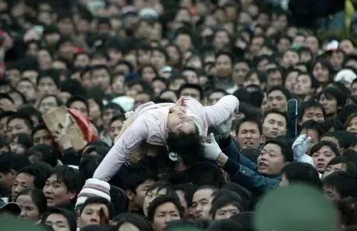 1995年广州站检票口,女乘客被挤哭。