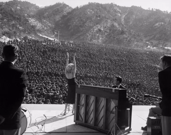 1954年,玛丽莲梦露在韩国为成千上万的军队表演。