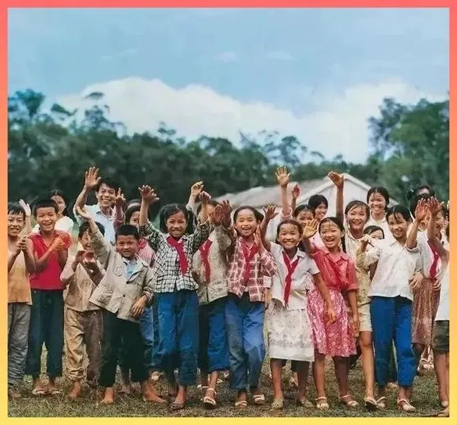 那时候的.孩子,.笑.容是真灿烂啊!没有补习班,没有手机.游戏,一.群小.伙伴在田野里疯跑,对着镜头挥手就是最快乐的事。你看那.红领巾,鲜艳得像是要把那个.年代.的希望都点燃。现在的孩.子物质丰富了,可这种发自内心的,毫无.杂质的快乐,似乎.越来越难找了。