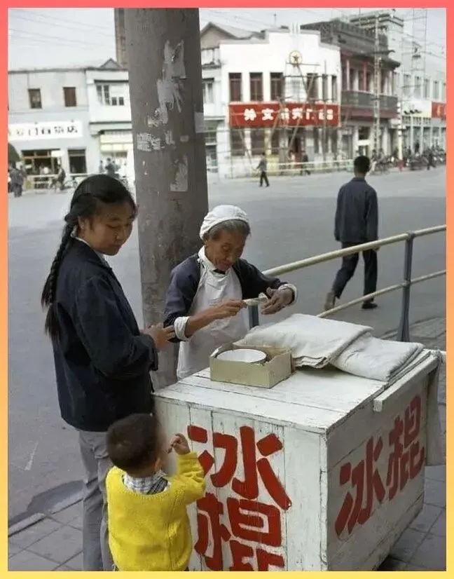这场景.,眼.熟不,街头.的冰棍摊!那时候的冰棍箱.子都是白色的木箱,里面盖着厚厚.的棉被.保温。几分钱一根.的老冰棍,那是夏.天里最奢侈.的享受。小孩子眼巴巴地看着,大人掏出皱巴巴的零钱买上一根.,那股子凉爽劲儿,.能甜到心里.去。