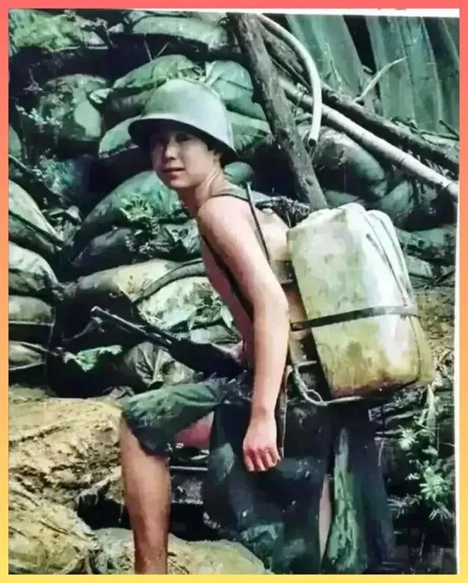 这是前线的战.士吧,光着膀子,背着自.制.的简易装备,眼神里透着坚毅。正是有.了他们的负重前行,才有.了我们.后来的岁月静好。向那.个.年代的英.雄致敬!