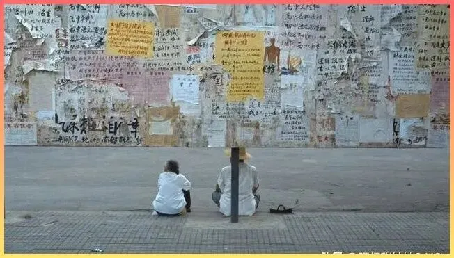 那时候的信息交流.全靠这.种墙.上的大字报或者通知栏。找.工作,找房子,寻人.启.事,全都在这上面。两位老人坐在前面,或许是在歇脚,.或许是在看来来往往的.人群.。这面.墙,记录.了多少悲欢离合.啊。