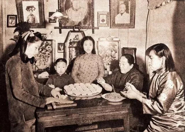 旧时的春节总是特别有序。家家户户先是精心准备供品,虔诚地拜祭送祖;再到悉心烹调具有好彩头的菜式,阖家共享年夜饭,在供桌上放上鸡、鸭、鱼、肉、水果、糕点,然后各房男女老小都要来厅上拜祭。于是,吃年夜饭,也成了中国人极为重视的家庭宴会。