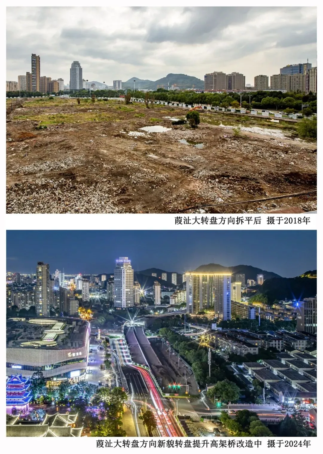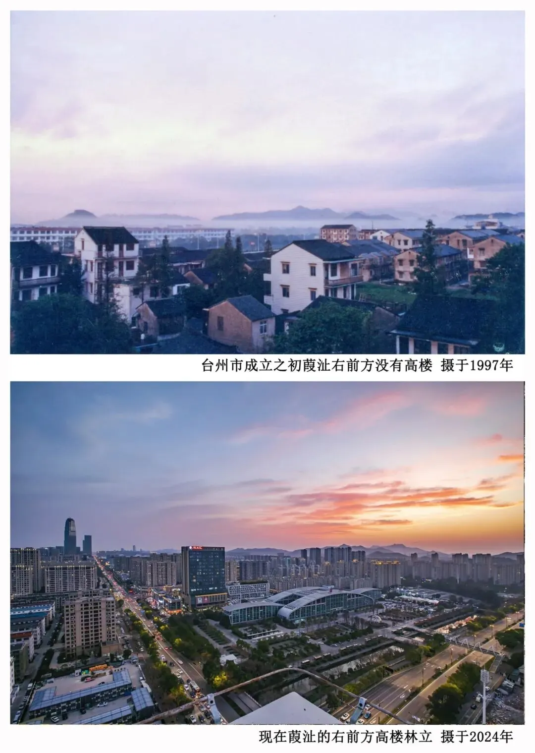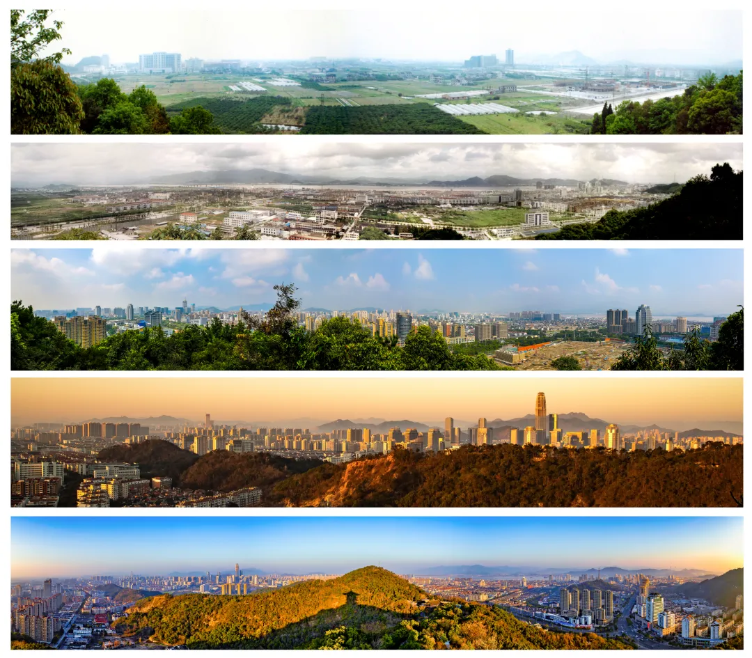 此后一年又一年,他带着相机一次次回到这里,站在相同的位置,按下快门。“喏,你看这张,最早的时候,大楼前面还是一片田,还有农民在那种菜。”他指着一张张照片说,“后来田没了,变成了一条水泥路。再后来,路两边开始起房子,一幢、两幢……现在这一片都是高楼了。”