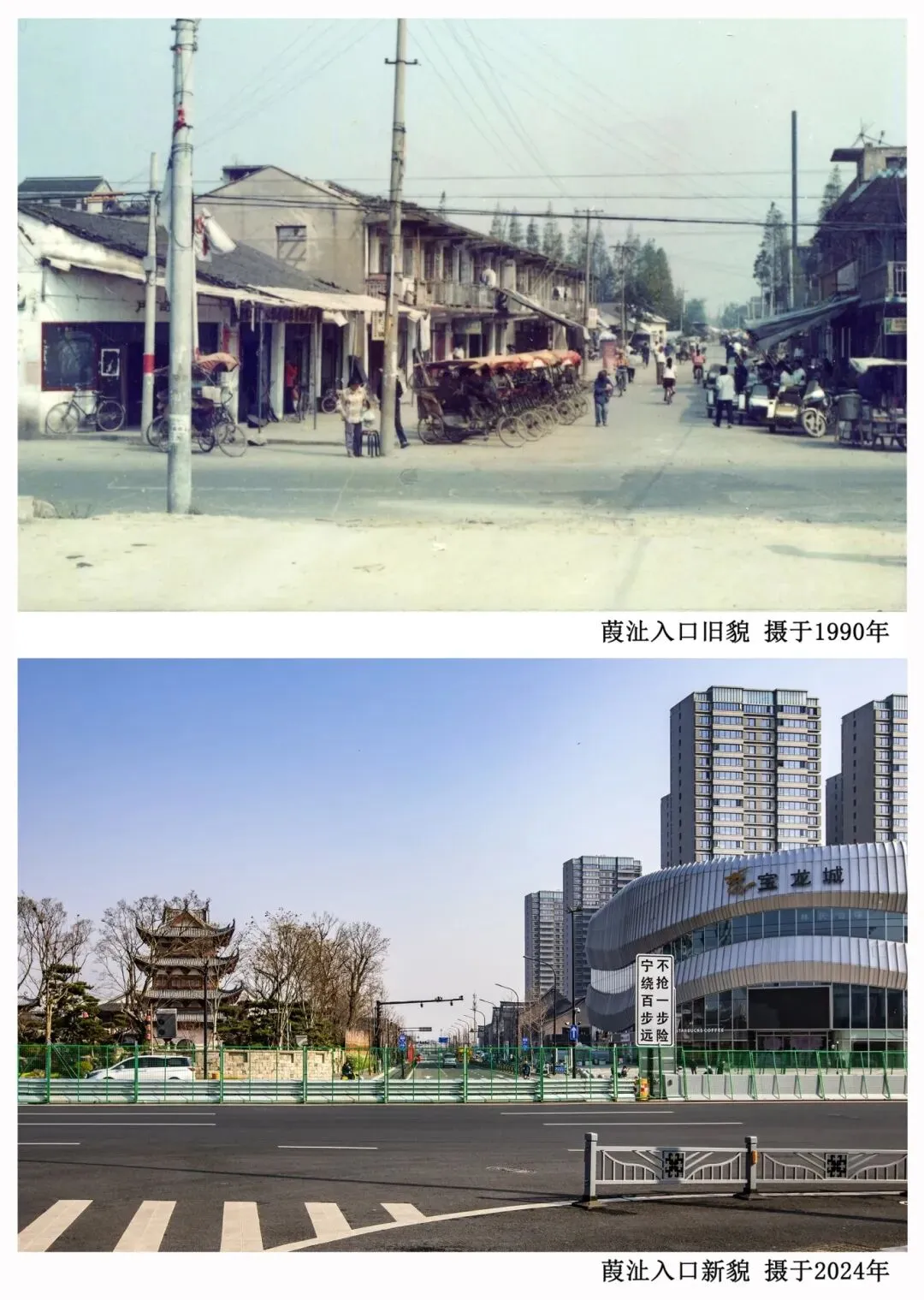 “葭沚老街曾有一处低洼地,一到雨季就积水。雨下的大时,水能没到小腿肚。”他翻出一张老照片,画面里居民正卷着裤腿,小心翼翼地在积水中前行。葭沚老街改造焕新后,他再次回到原地拍了张照片。“雨还是那场雨,但路面上清清爽爽,大家再也不用蹚水了。”他指着对比鲜明的两张照片,语气里带着欣慰,“这种实实在在的变化,最让人高兴。”