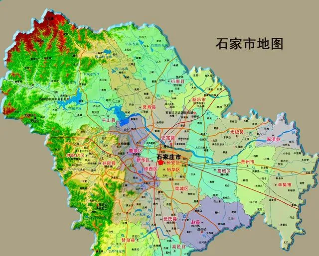 最后这张石家庄地图颜色分明,山地和平原则像一块块拼图,铁路像红线把城串起来,很多人说石家庄是火车拉来的城市,沿着铁轨,老街与新城一站一站接力起来,四十多年眨眼过去,街名没变,气质却越活越新鲜。