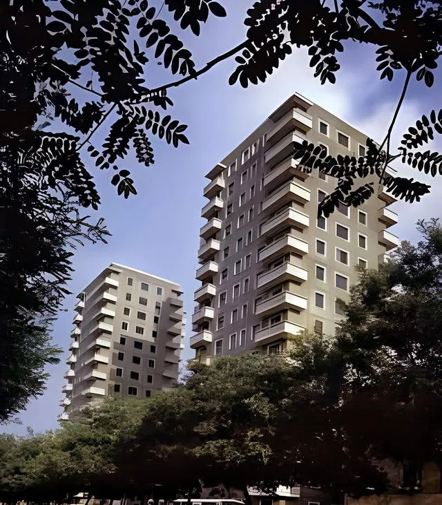 这几栋十六层的宿舍楼,在当年算石家庄的天花板,方方正正的阳台一顺排开,楼下树影密密,谁家阳台晾着花布床单都清清楚楚,现在的天际线被拔高了,当年的拔尖儿却有股朴拙劲。