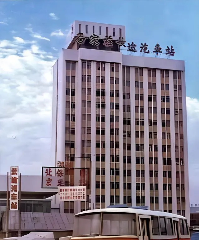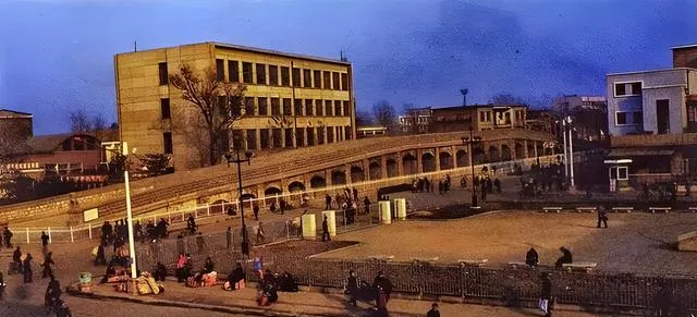 图中这座站房就是老石家庄火车站,长条形的立面配着方正的钟楼,屋顶插满小旗,广场上汽车不多,人流汹涌像过节一样,妈妈说那时出远门靠火车最踏实,买到票就像中了签,赶车前一定要在站前合张影。