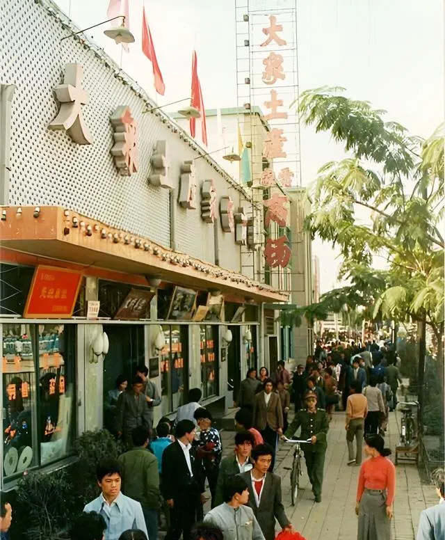 这家写着大众土产家电的大商场,门口人潮像赶集,一到周末肩挎包的年轻人把玻璃橱窗围了三层,盯着收音机和电风扇发呆,攒够票和钱再来搬回家。