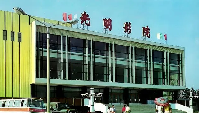 这座玻璃幕墙的光明影院外形很现代,台阶宽宽,门口撑着太阳伞等开场的人不少,我第一次看大片就在这儿,散场时耳朵还嗡嗡作响,回家一路复述情节。