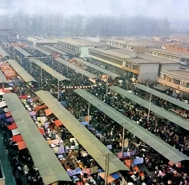 这张高处俯拍是关林市场,棚布一字排开,摊位像棋盘格子,吆喝声混在一起像潮水,小时候跟着叔叔挤进去买玻璃弹珠,回程鞋面全是灰,但兜里鼓鼓的,觉得自己发了大财。