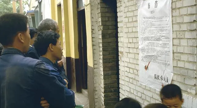 这堵白砖墙上贴着市告,大家把手背在身后凑过去认字,谁念到关键处就停一下,旁边人接着读,像接力赛一样,读完散开,消息也就散到街头巷尾。