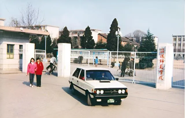 这扇校门口停着一辆白色小轿车,那时在信阳师范算稀罕物,门卫大爷戴着袖章,问一句“干啥的”,我跟着表哥进去打球,操场边一排白杨直直的,风吹叶子像拍巴掌。