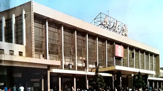 这座玻璃格栅的建筑就是驻马店站,苏式味道十足,大门口人来人往,布袋皮箱堆成小山,有人刚下车就去找热水壶接水,站牌上黑字白底清清楚楚。