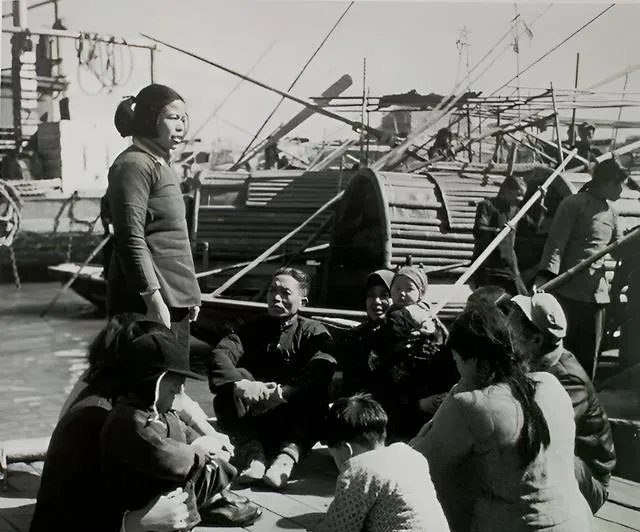 这群人席地而坐,身后是竹篷船,讲的人站着,手一挥就把注意力招来了,那会儿学习会多,一围就是一圈,风吹过来,竹篾在耳边簌簌响。