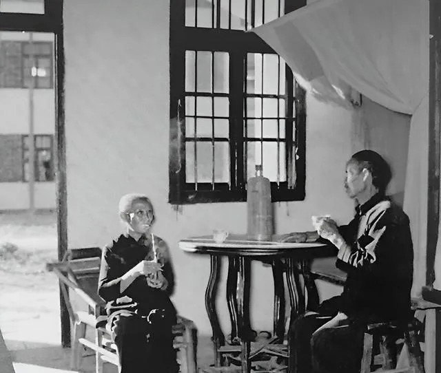 这两位老人坐在窗下,搪瓷杯冒着白气,桌上是一只旧保温瓶,屋外树影摇来摇去,安稳就是这个样子。