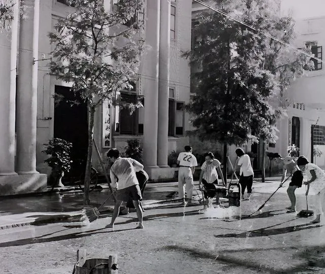 这群人端着桶拿着大刷子在街口抹水,地面被冲得发亮,爱国卫生不是口号,队伍一喊就上手,雨后晒干,空气都有股肥皂味。