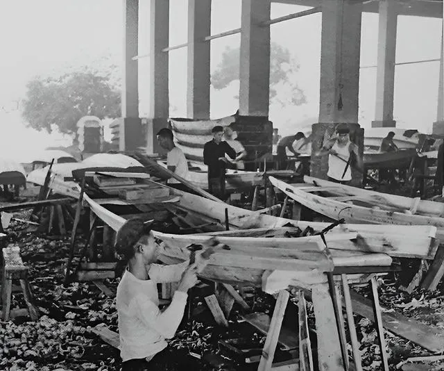 这个架子就是小木船的龙骨,木工举着锤子顺着弧度敲,木屑像雪片一样堆在脚边,海风一灌,咸味就进了木头里。