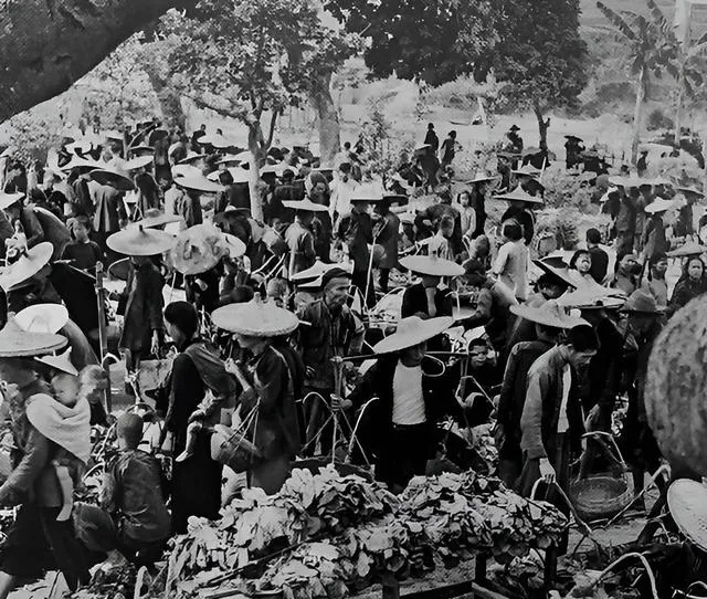 这张是露天墟,斗笠像一片片伞盖,卖菜的吆喝声一浪高过一浪,鸡鸣混着算盘声,走出这片树荫,手上就多了两串葱和一把韭菜。