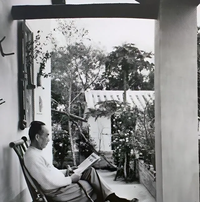 这位老人靠在躺椅上,手里摊着报纸,身后是一院子的花木,阳台的影子把地面切成几块,下午就该这么过。