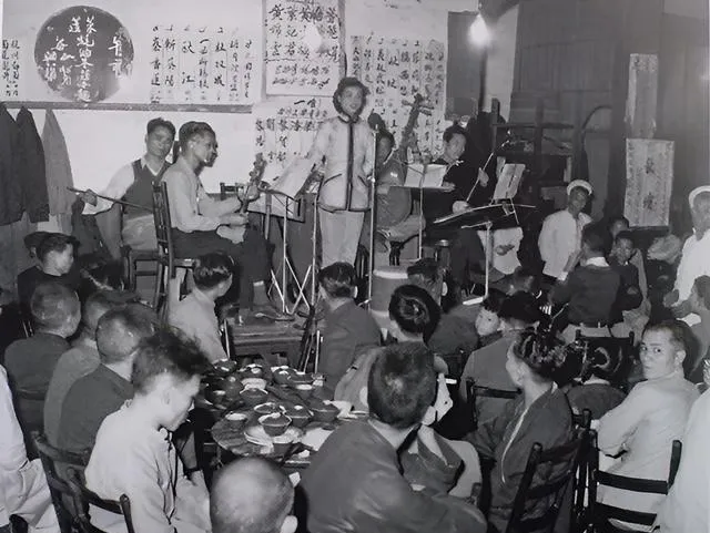 这就是茶馆听曲,台上弦索一合,歌喉一抬,台下人把茶盅盖轻轻一磕,热气把眼镜片都糊住了,精彩处有人忍不住叫好。
