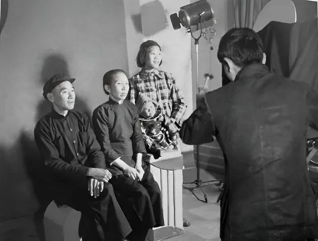 这个老式机位前,一家人坐得端端正正,摄影师把脑袋钻进黑布里,口里数着一二三,快门“咔嚓”一下就把笑容按住了。