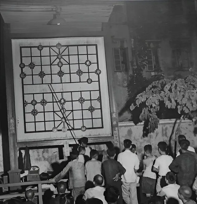 这面大棋盘吊在墙上,棋子用竿子一拨,全场人跟着“哦”一声,黑白两边你一言我一语,谁家小孩要回家,都得被大人拎着耳朵拖走才散。